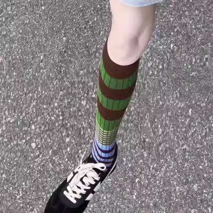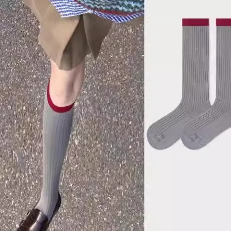 春夏新款 过膝袜 黑灰拼接小腿压力袜 巨巨百搭 给我狠狠美起来