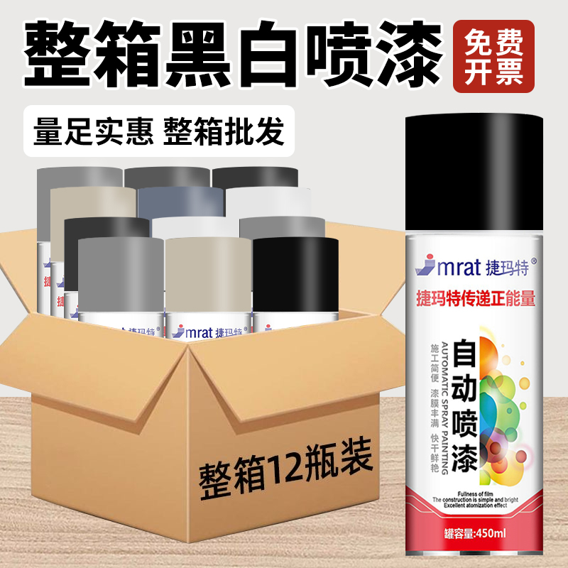 自喷漆12瓶整箱批发自动手摇黑色白色银灰色金属防锈油漆颜色大全