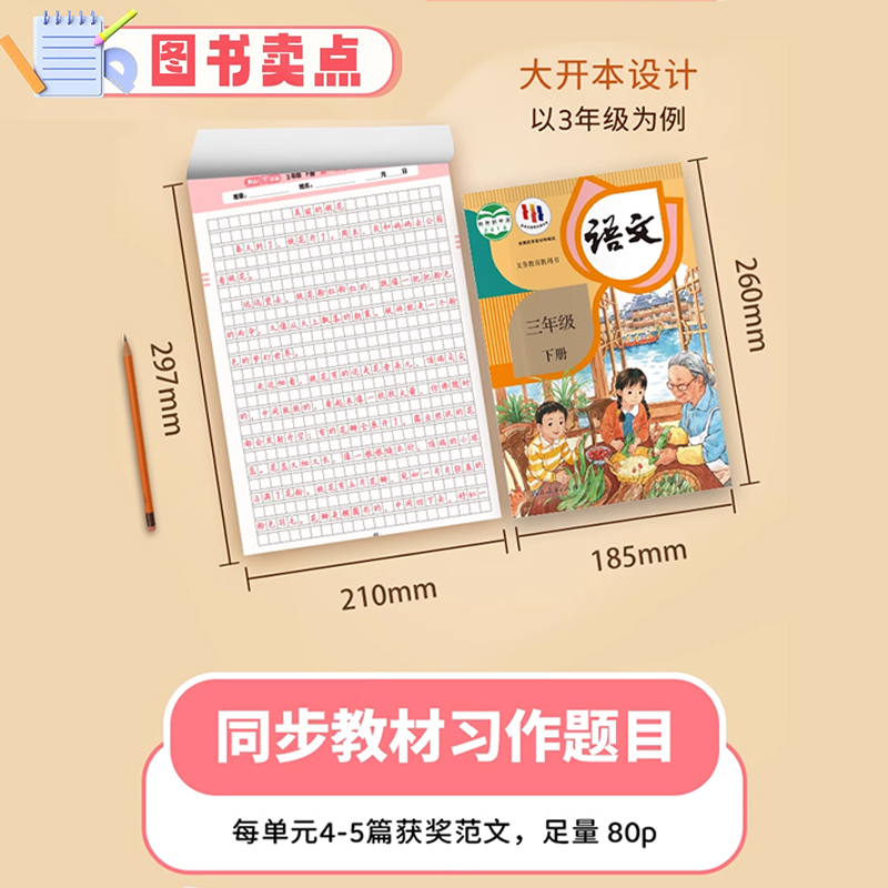 2025秋开心活页同步作文字帖小学生二三四五六年级上册满分作文练字帖1 6年级教材同步优秀范文素材积累大全金句八百例语文练字帖