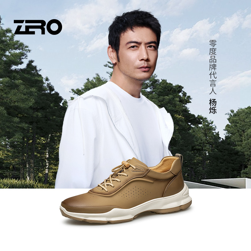 轻便运动休闲鞋 ZRO零度2025秋季 真皮时尚 冲孔透气松紧带男鞋 新款
