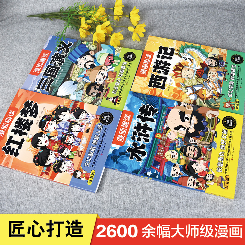 原著课外阅读书籍少儿版 正版 带拼音小人书 西游记三国演义水浒传红楼梦儿童绘本连环画小学生版 漫画趣读四大名著全套4册彩图注音版