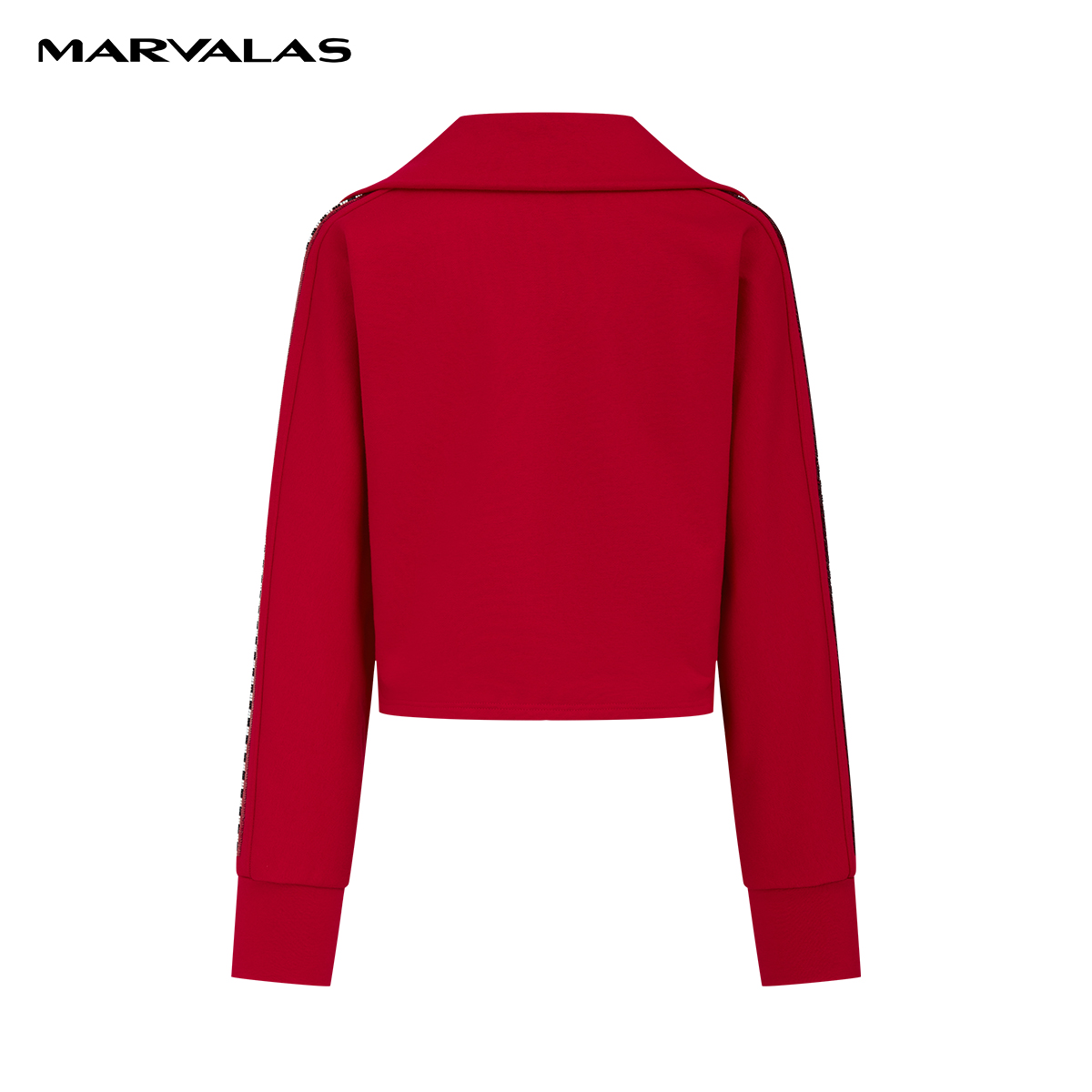 拉链POLO领撞色边百搭通勤上衣 时尚 曼德诗设计感卫衣2025秋季 新款