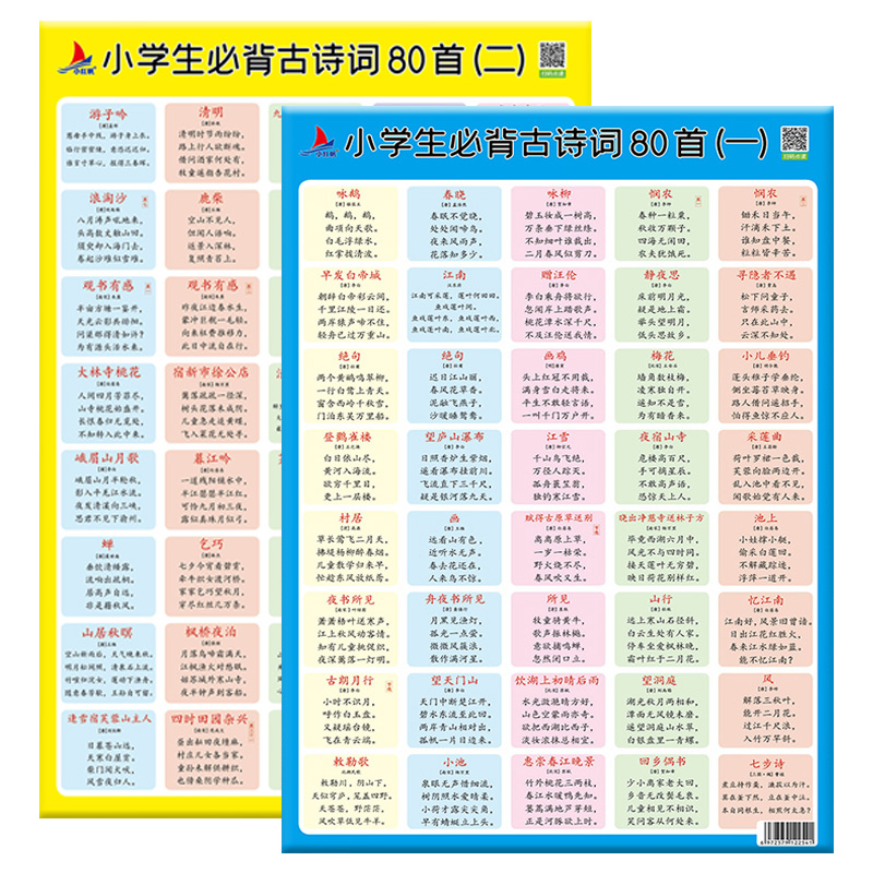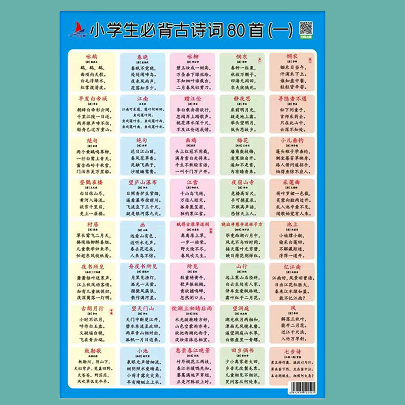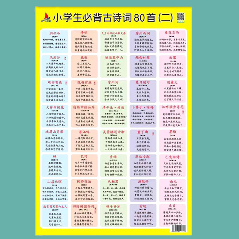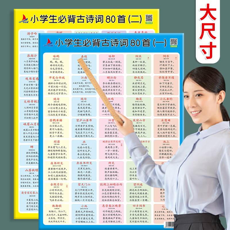 小学生必背古诗大全80首 幼儿早教挂图学习识字神器 儿童幼儿学古诗词语文学习识字挂图墙贴人教版