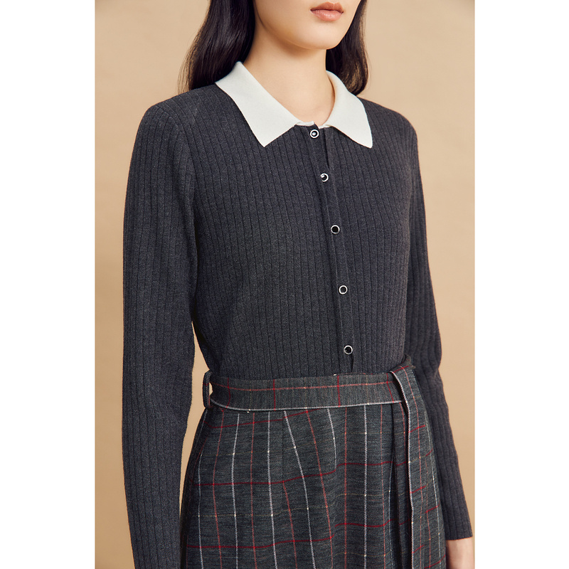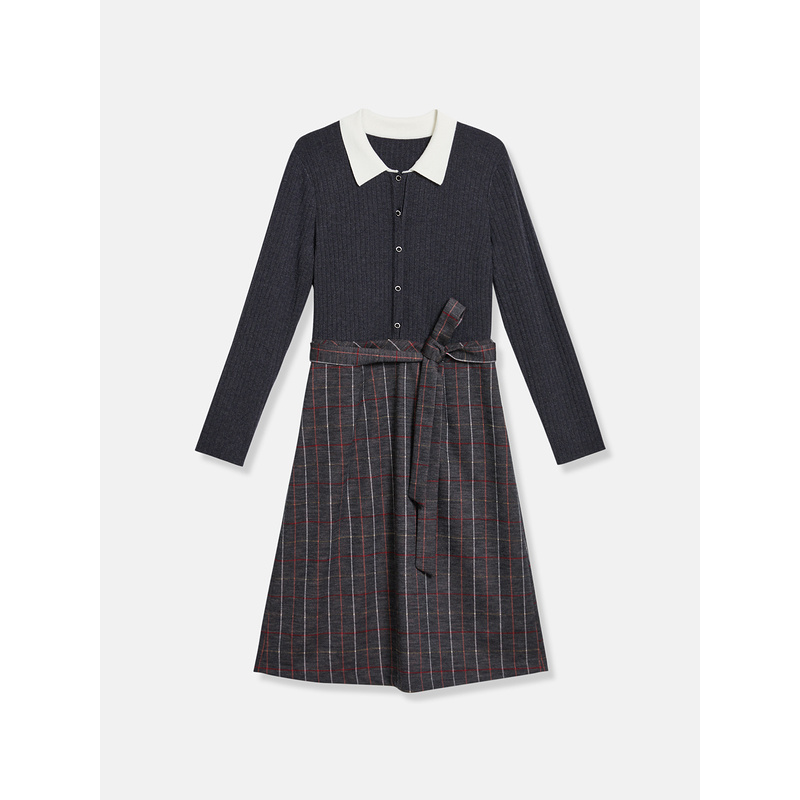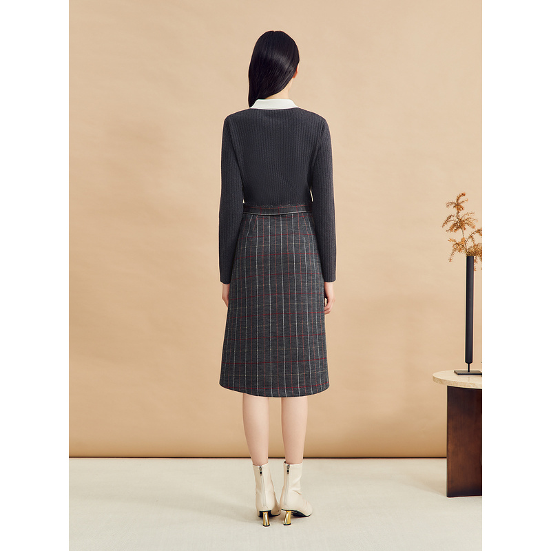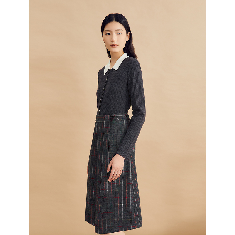 OCHIRLY欧时力 水溶棉V领针织连衣裙收腰A字软糯肌理感秋冬尖货