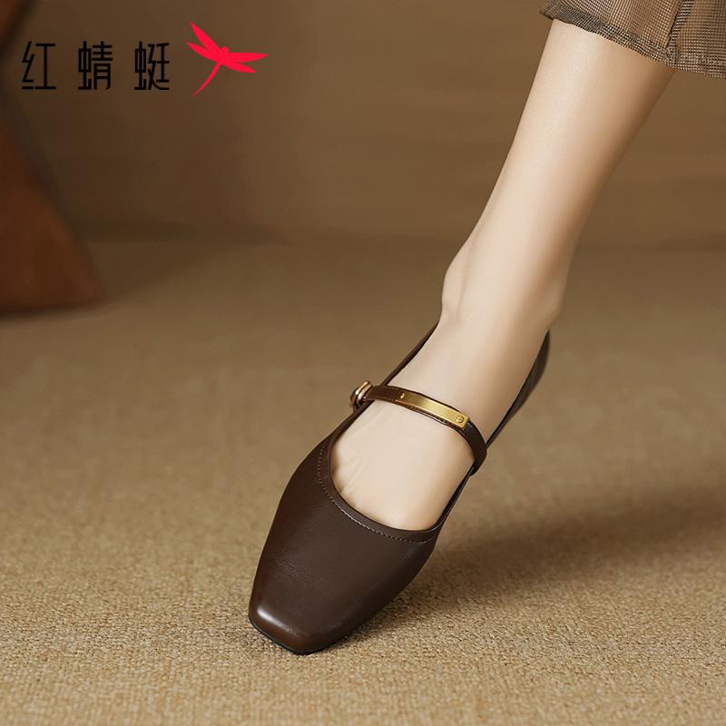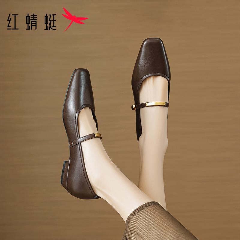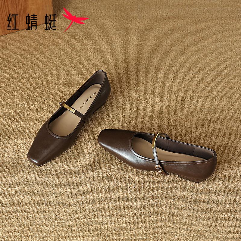 羊皮玛丽珍浅口女红色单鞋 百思图莫奈花园25秋新款 叶一茜同款