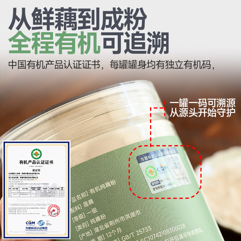 正宗纯有机藕粉洪湖莲藕粉正品 旗舰店无添加蔗糖原味营养代餐湖北