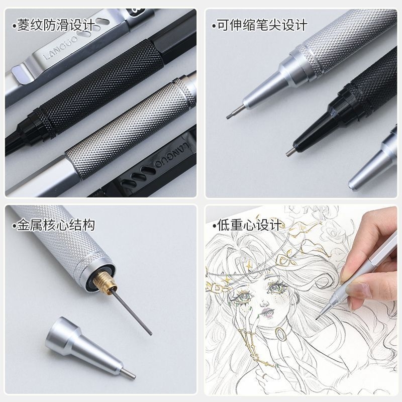 蓝果绘画金属自动铅笔绘活动铅笔绘图专用0.3 0.7mm低重心重手感专业不易手绘画素描美术2b漫画考试笔头 0.5