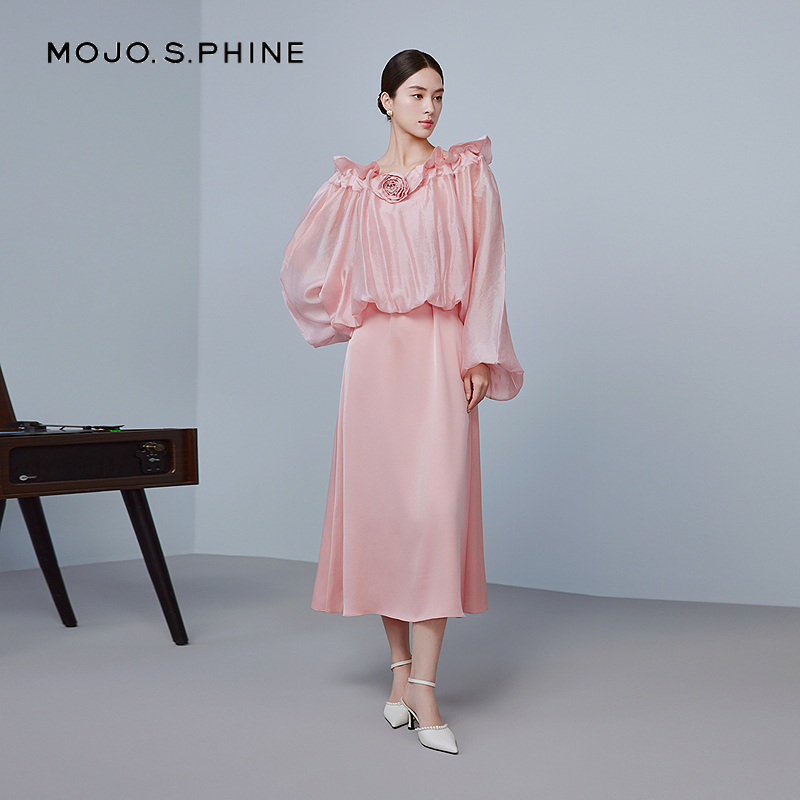 修身 Vero 千金风翻领泡泡袖 25秋冬新款 显瘦气质丝绒上衣 Moda衬衫