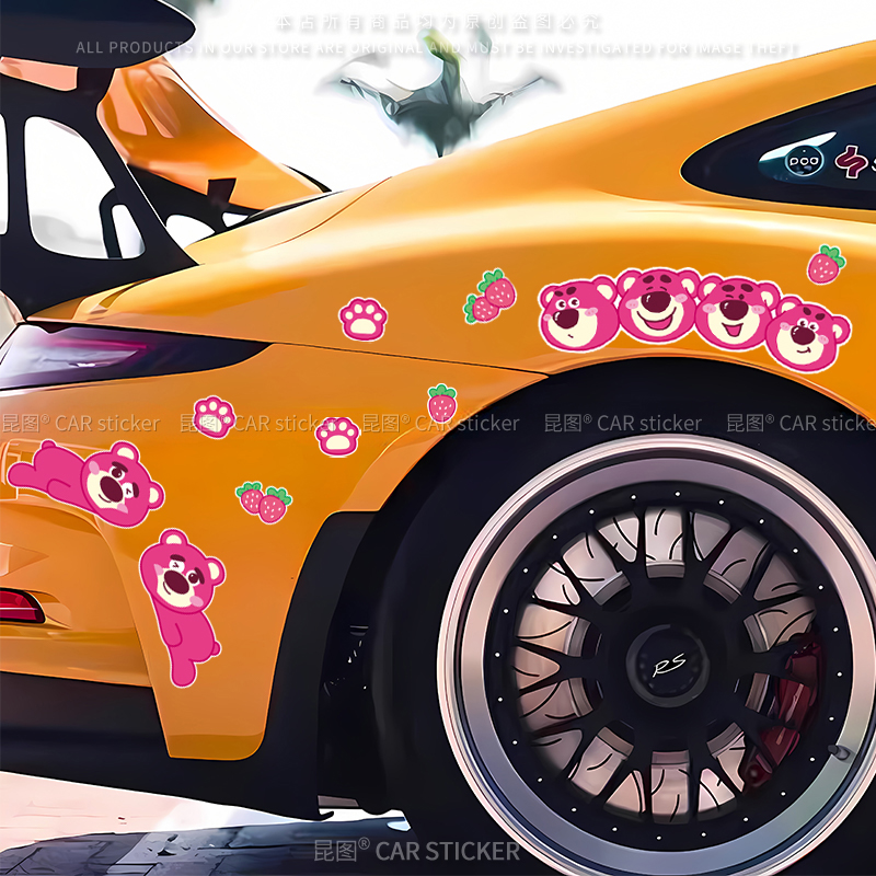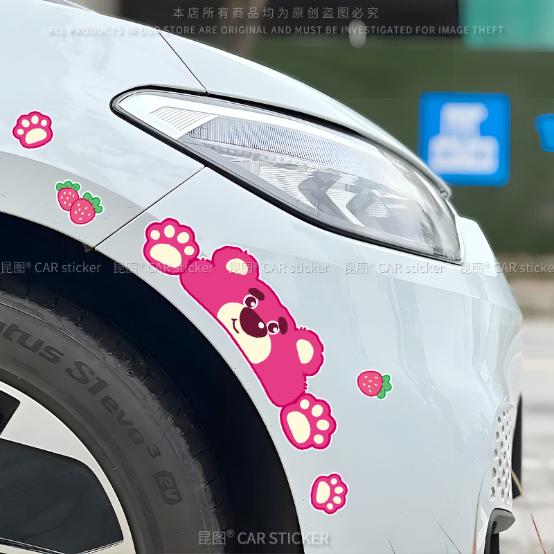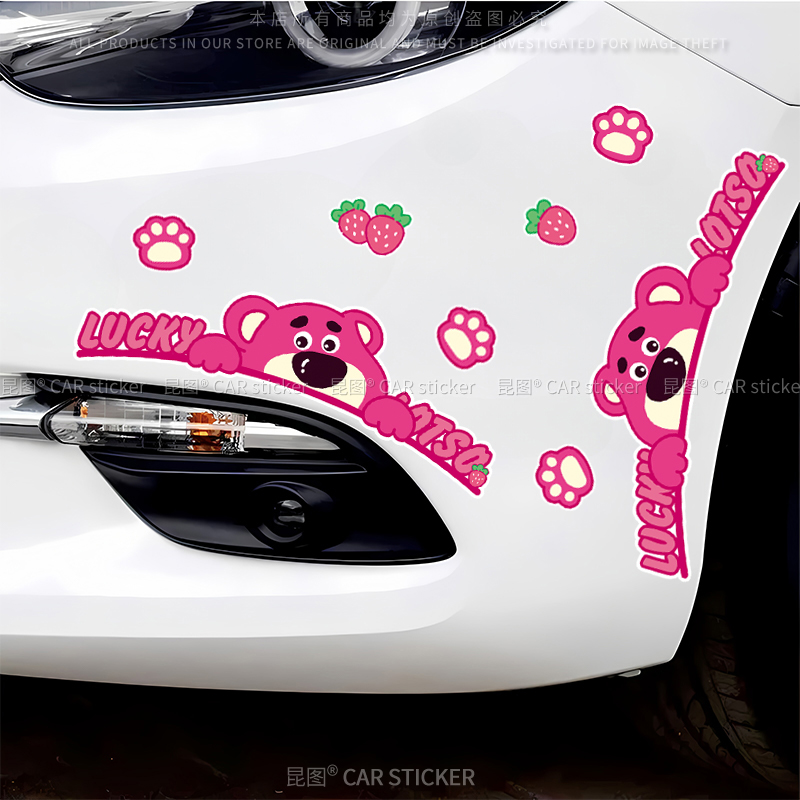 草莓熊汽车贴纸轮眉保险杠车身贴划痕遮挡防水电动车个性 创意贴画