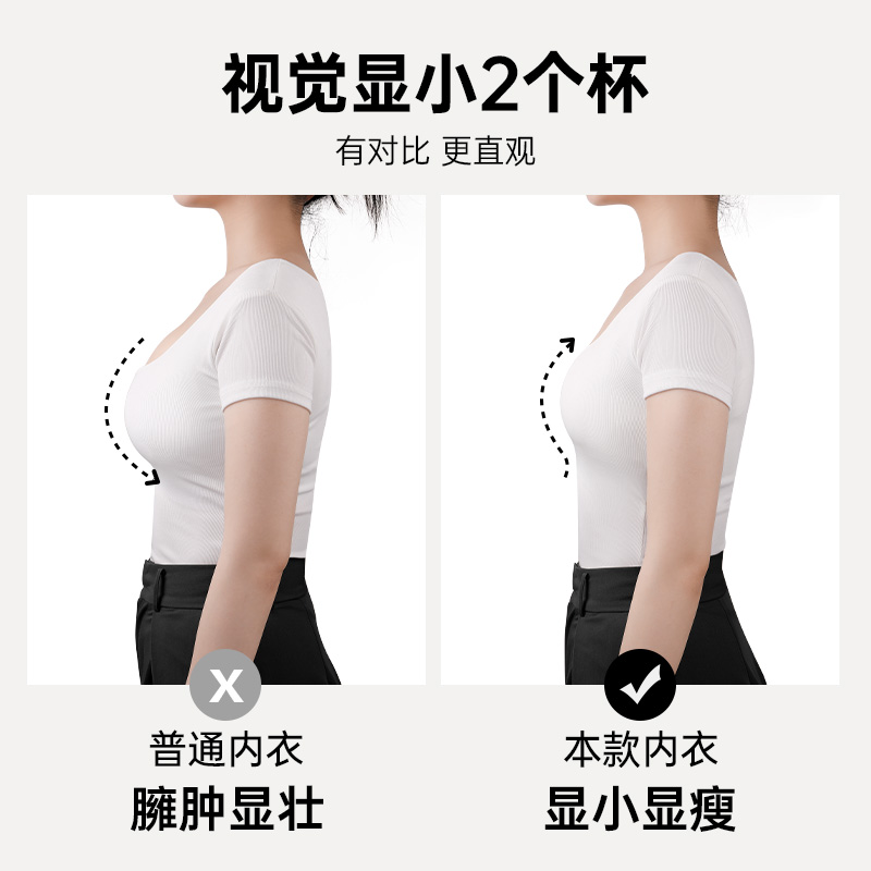 润微超薄兔耳朵薄杯透气大胸显小收副乳调整型女内衣聚拢文胸罩