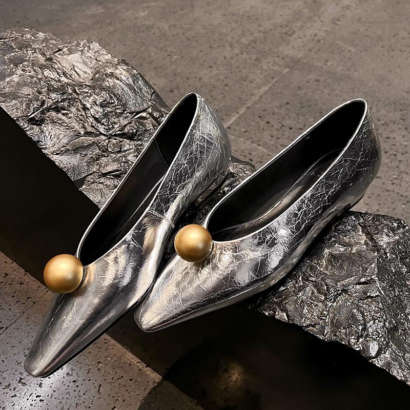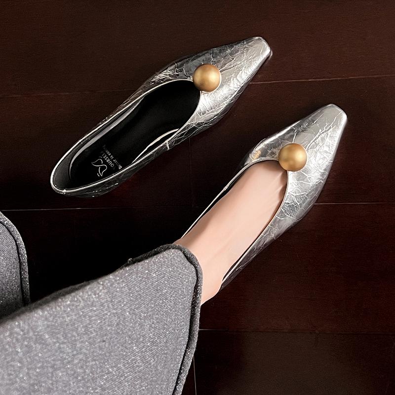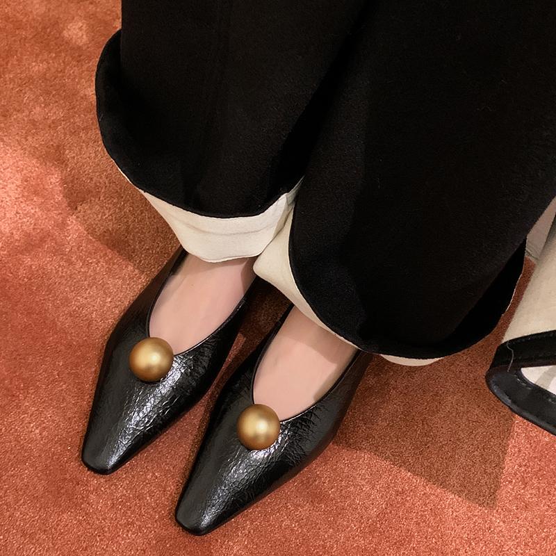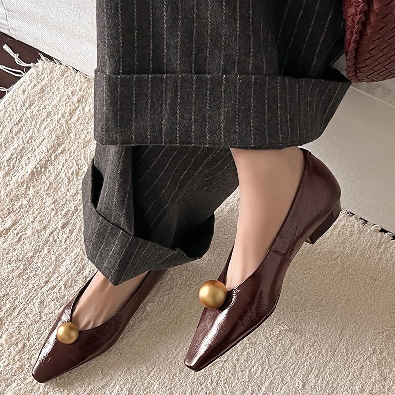 女时尚 单鞋 百搭小方头平底鞋 浅口通勤鞋 复古 2025春季 真皮法式 新款