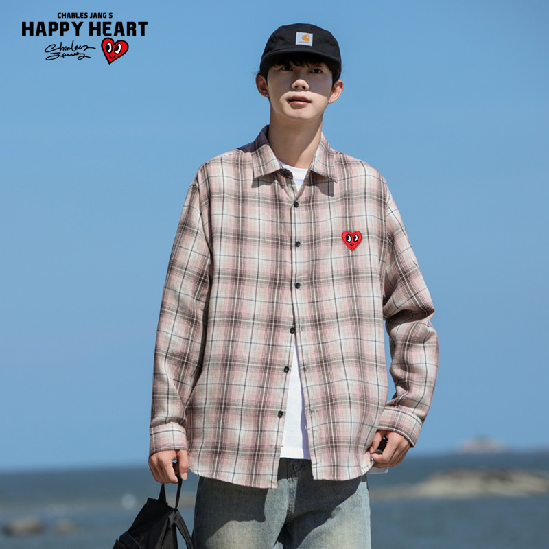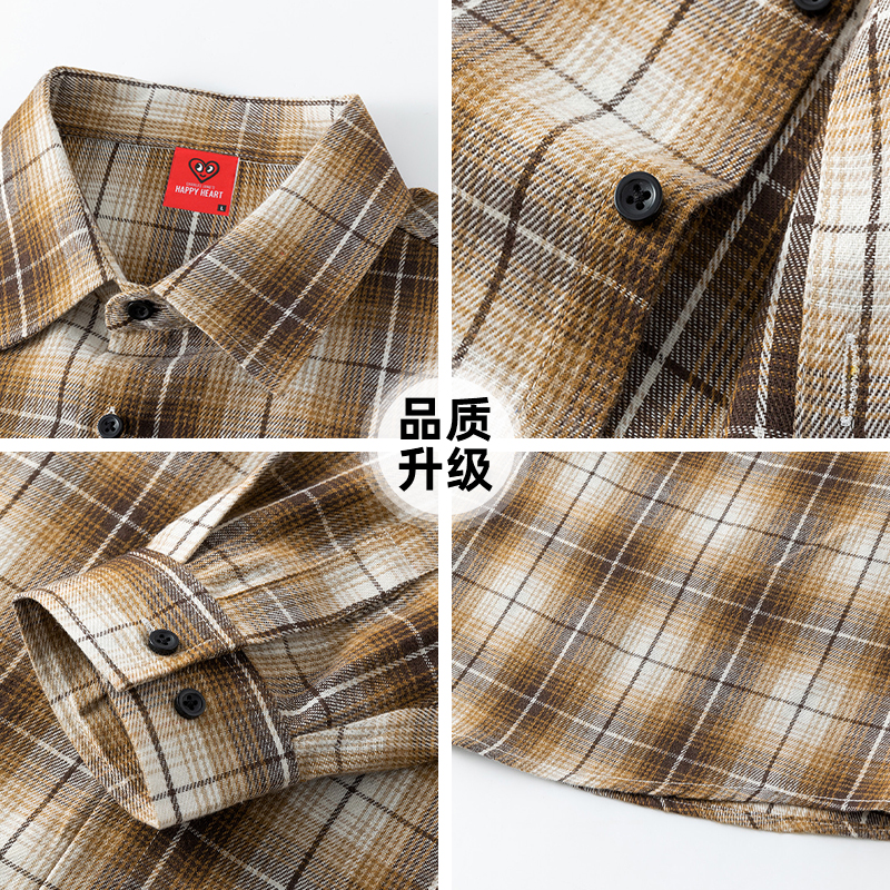 小狗刺绣格纹休闲翻领宽松衬衣506148 男长袖 三福2025秋冬新款 衬衫