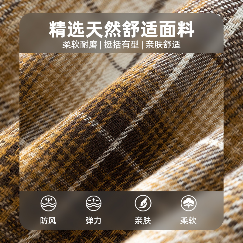 宝相花刺绣口袋链条宽松格子衬衣510038 男长袖 三福2025冬季 衬衫