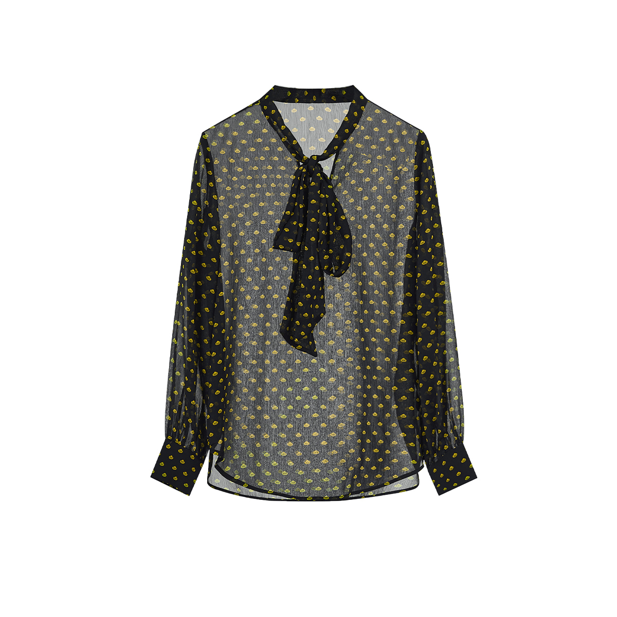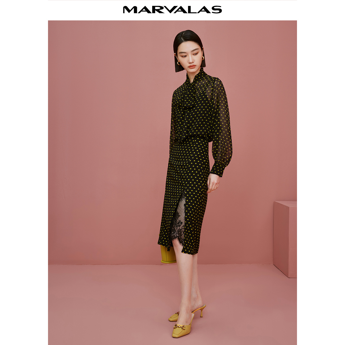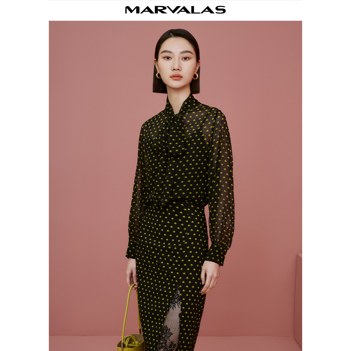 复古V领飘带长袖 曼德诗波点时尚 新款 2025秋季 优雅气质两件套 套装