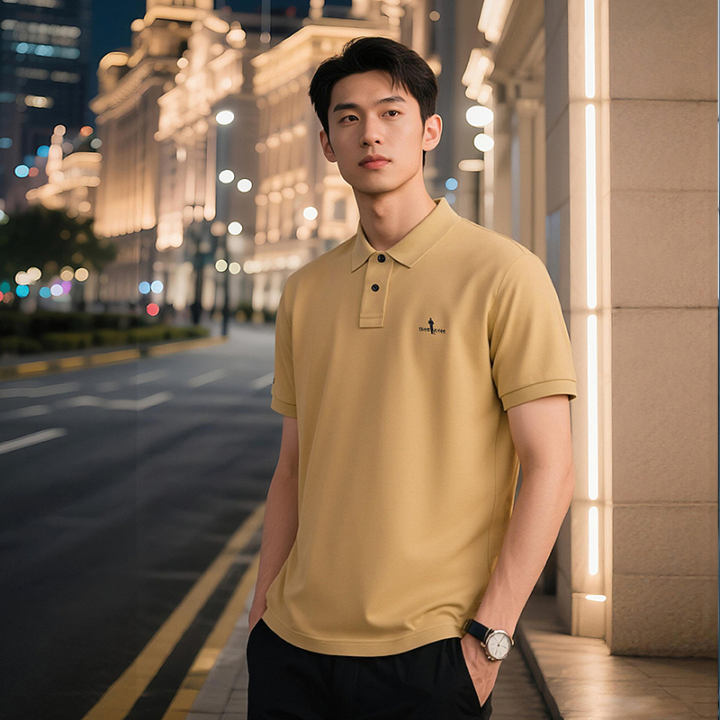 柒牌翻领长袖 Polo衫 男士 新款 不变形领 秋季 商务休闲T恤 华夫格
