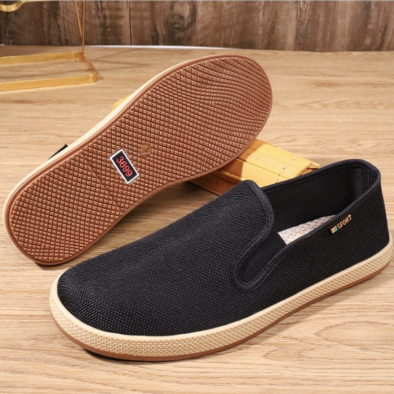 单鞋 软底透气防滑休闲轻便一脚蹬舒适不累脚黑布鞋 男款 老北京布鞋
