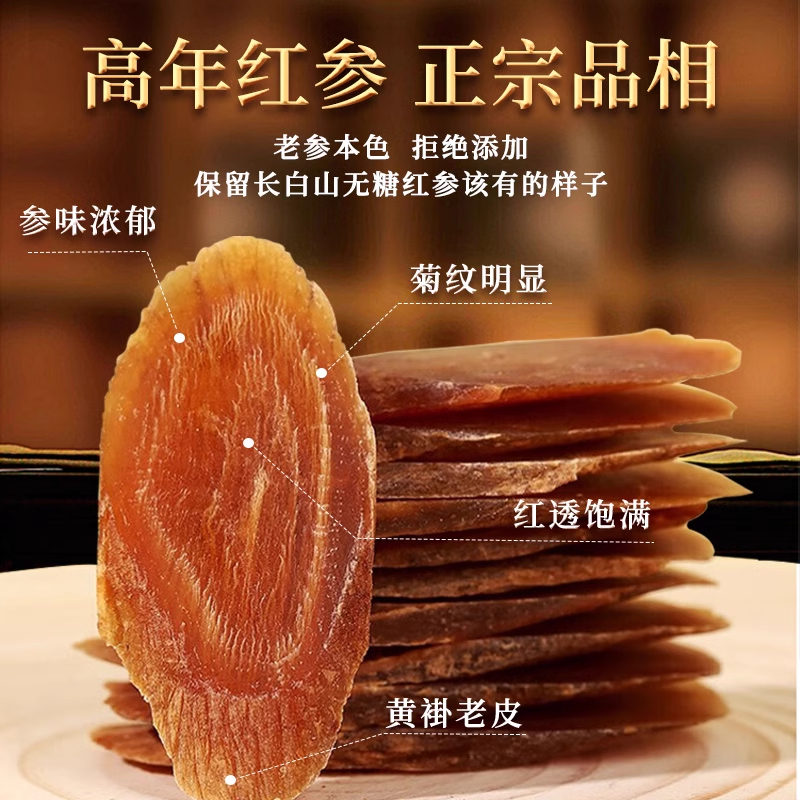 北京同仁堂长白山红参片中草药材高丽参人参中草药材泡水喝正品