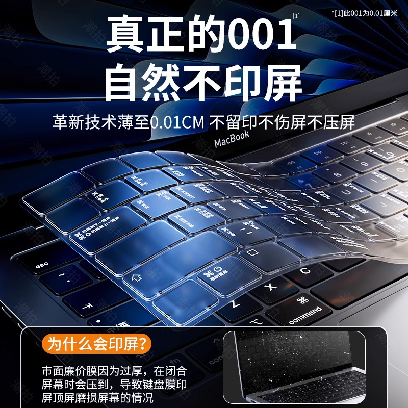 适用MacBook键盘膜pro13键盘贴air13.3苹果电脑mac笔记本M3保护膜6寸13.6快捷键透明12超薄14防尘罩1全覆盖15