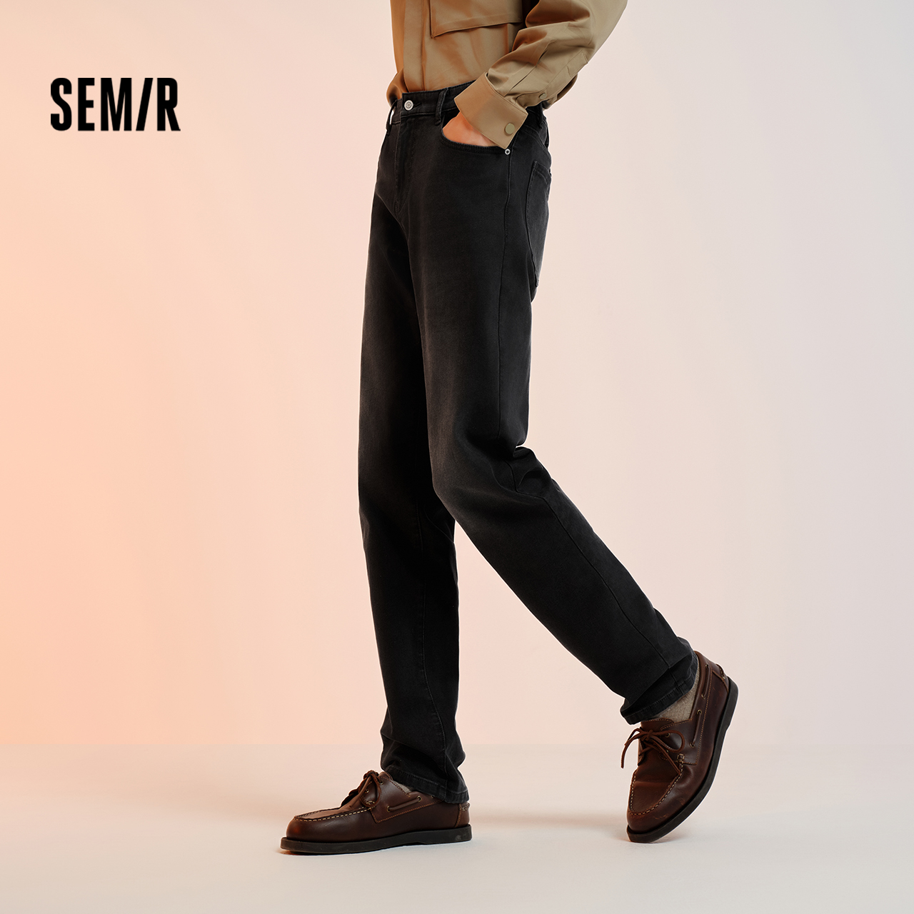 子简约百搭长裤 森马牛仔裤 复古做旧水洗直筒裤 新款 黑色 男2024冬季