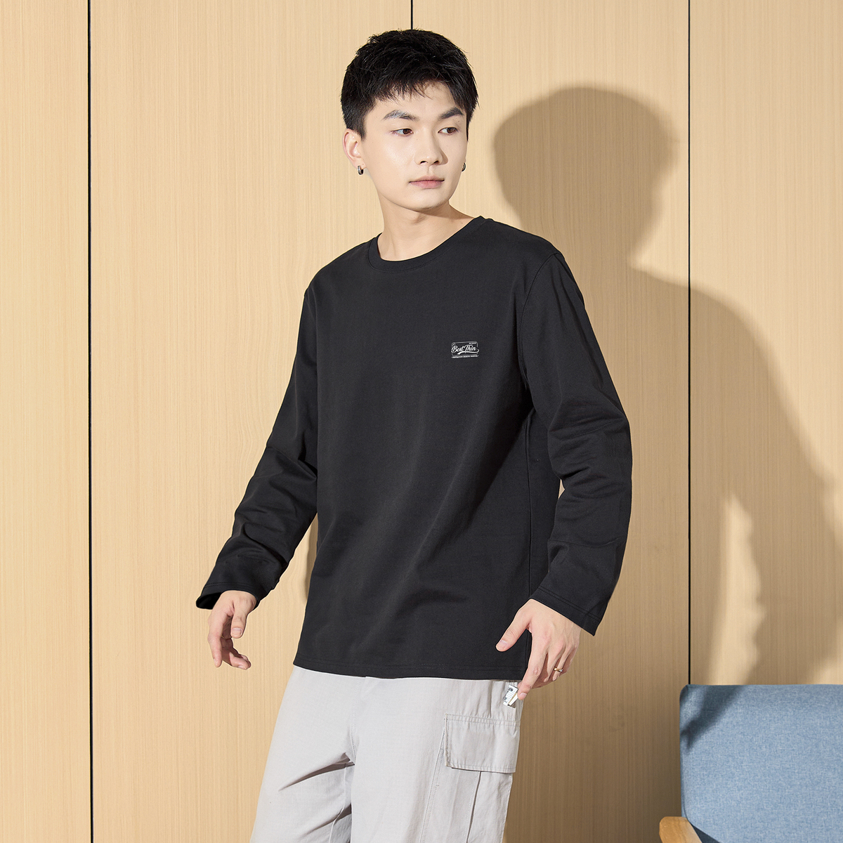 T恤男小细节圆领宽松上衣纯色内搭打底衫 长袖 潮t 新款 唐狮2025秋季