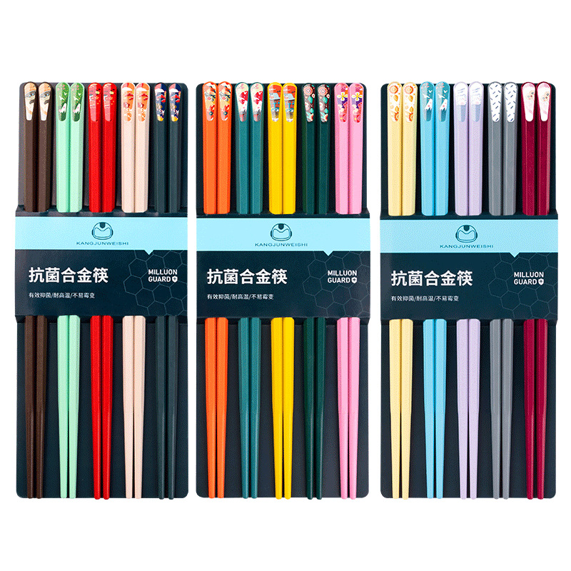 高档家庭合金筷子无漆不易发霉抗菌耐高温防霉餐厅防滑 五双装