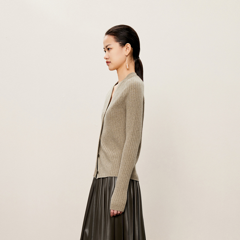 坑条螺纹针织衫 LESS修身 女春秋复古奶奶衫 开衫 2O9312300 V领长袖