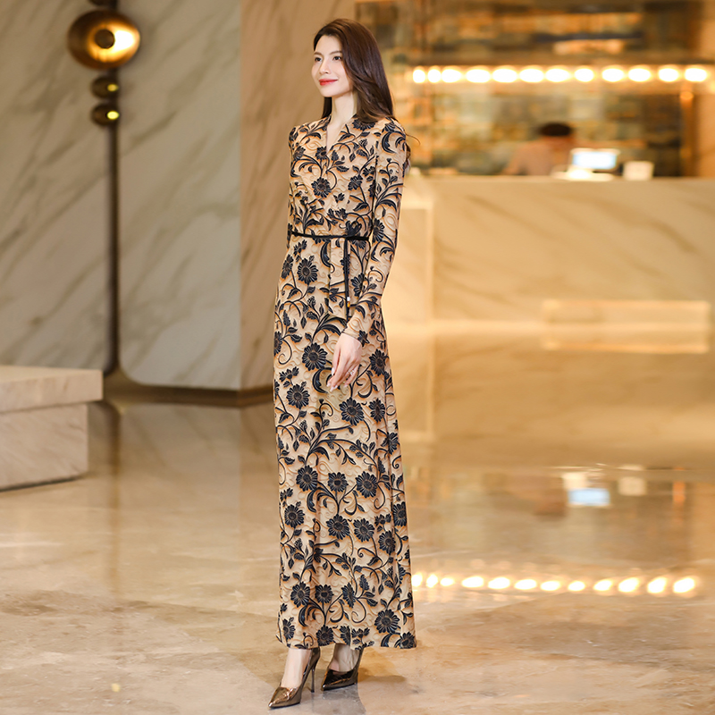 阔太太洋气高贵连衣裙女2025春秋季 收腰显瘦超长裙到脚踝1018 新款