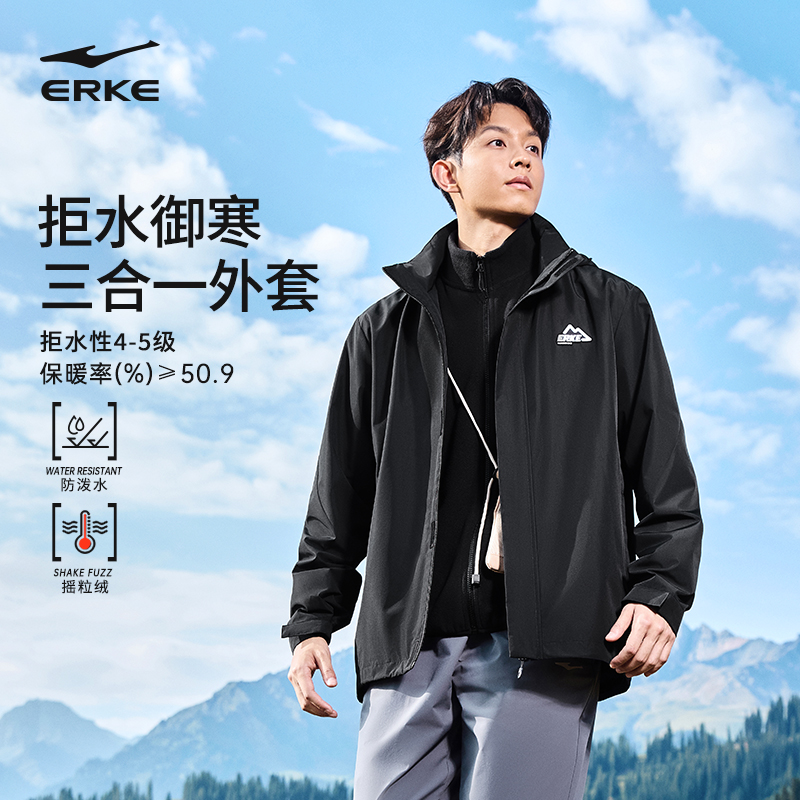 Jeep吉普外套秋冬男女三合一冲锋防泼水风衣男装 运动上衣防风夹克