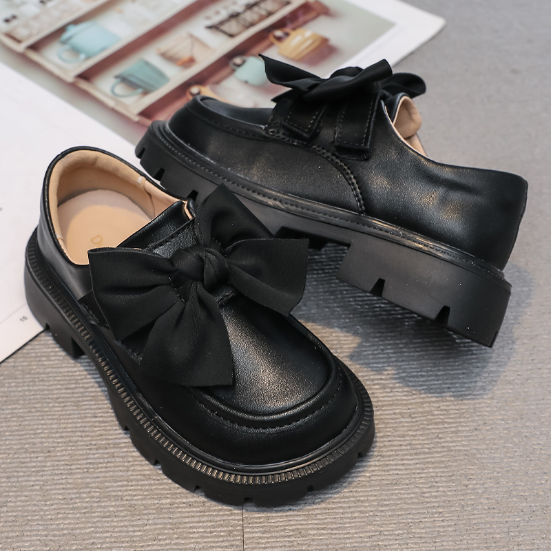 高跟乐福鞋 黑色厚底小皮鞋 松糕圆头美式 春秋增高粗跟玛丽珍鞋 女款