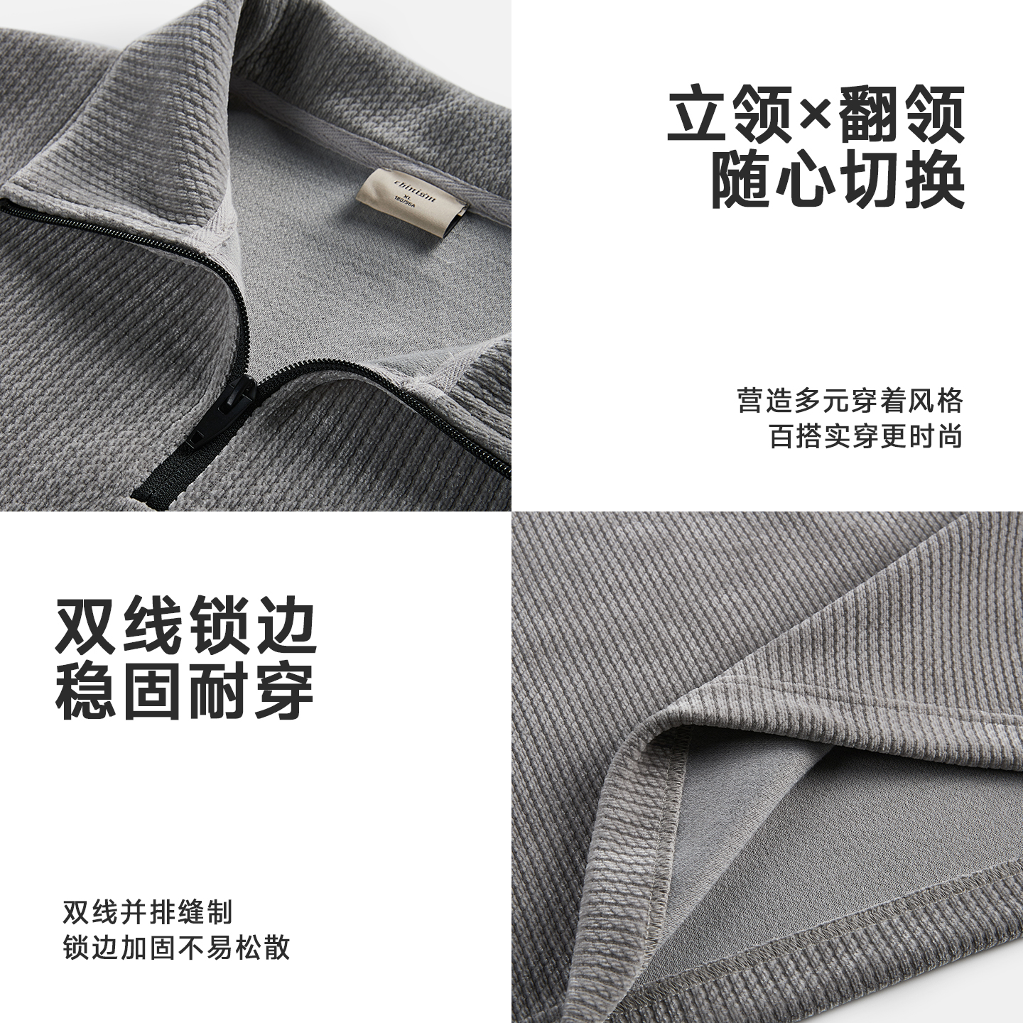 上衣 柒牌半开襟卫衣男青年商务T恤秋冬立领华夫格长袖 抗静电