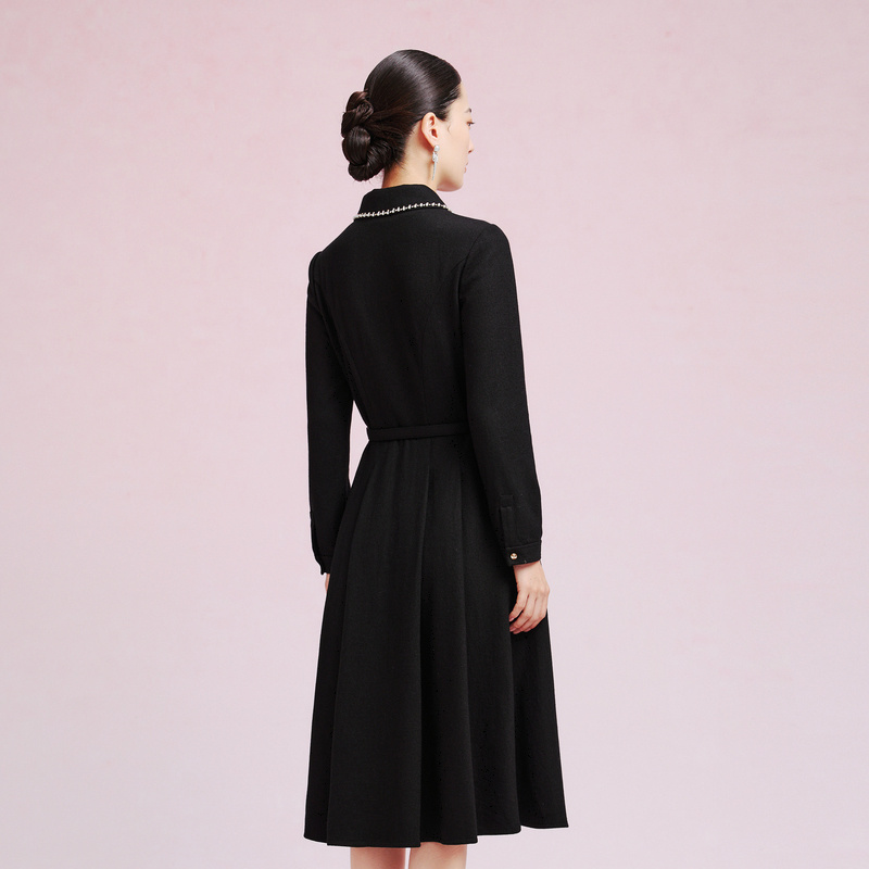 羊毛 新款 冬季 钉珠翻领气质风衣连衣裙 Koradior拉珂蒂时尚