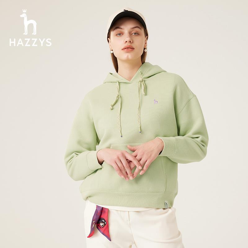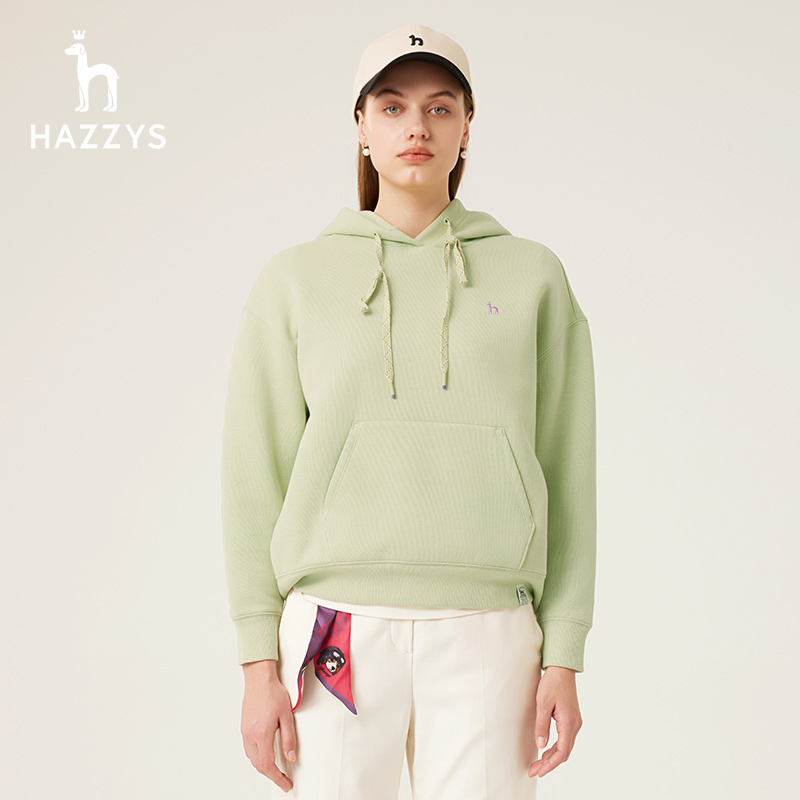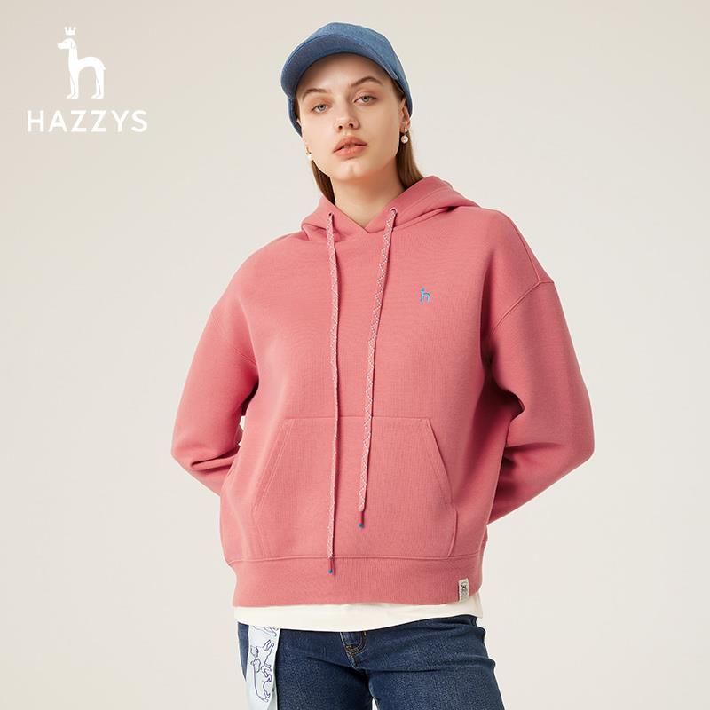 Hazzys哈吉斯连帽卫衣女士春秋新款 宽松休闲T恤 长袖