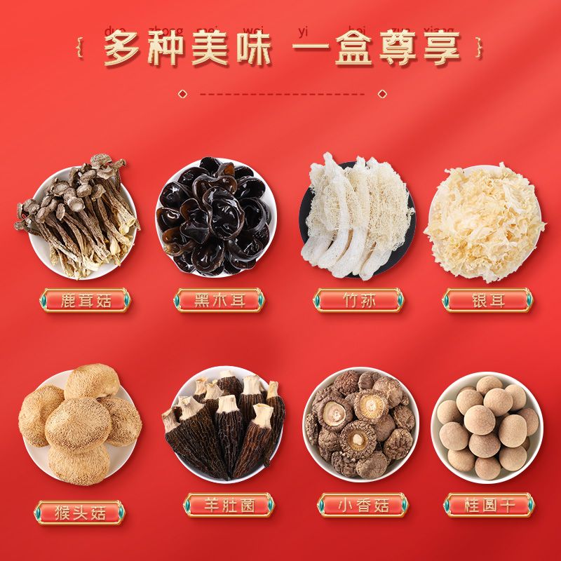 菌宴礼盒1kg×1盒木耳竹荪鹿茸菇羊肚菌香菇猴头菇银耳桂圆 包邮