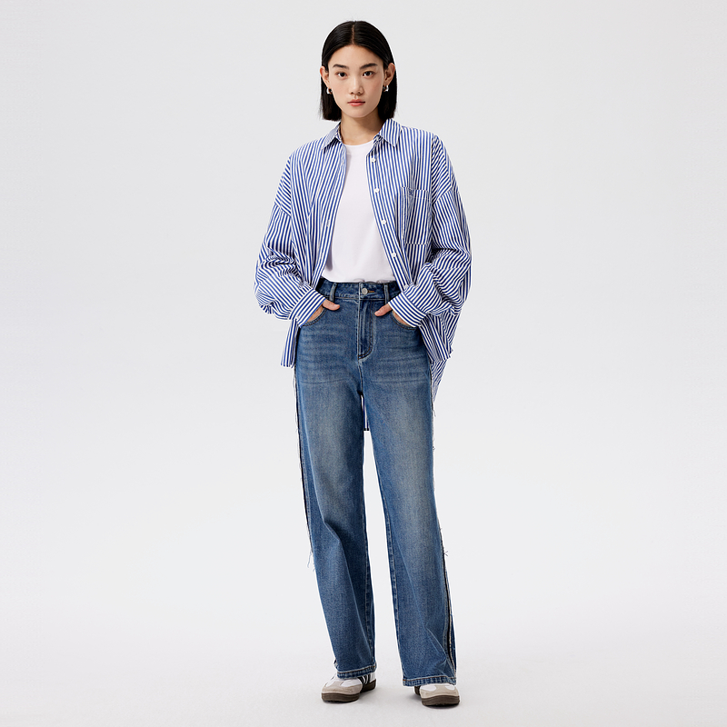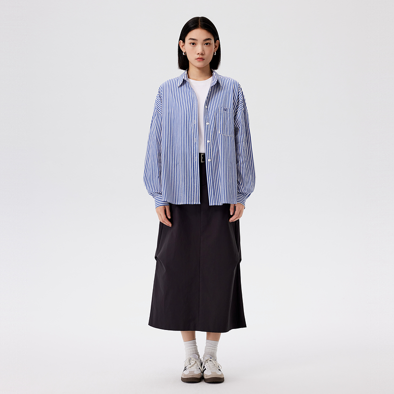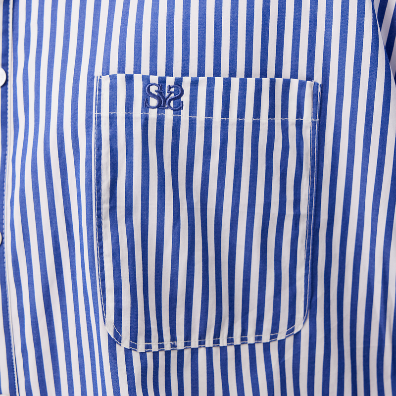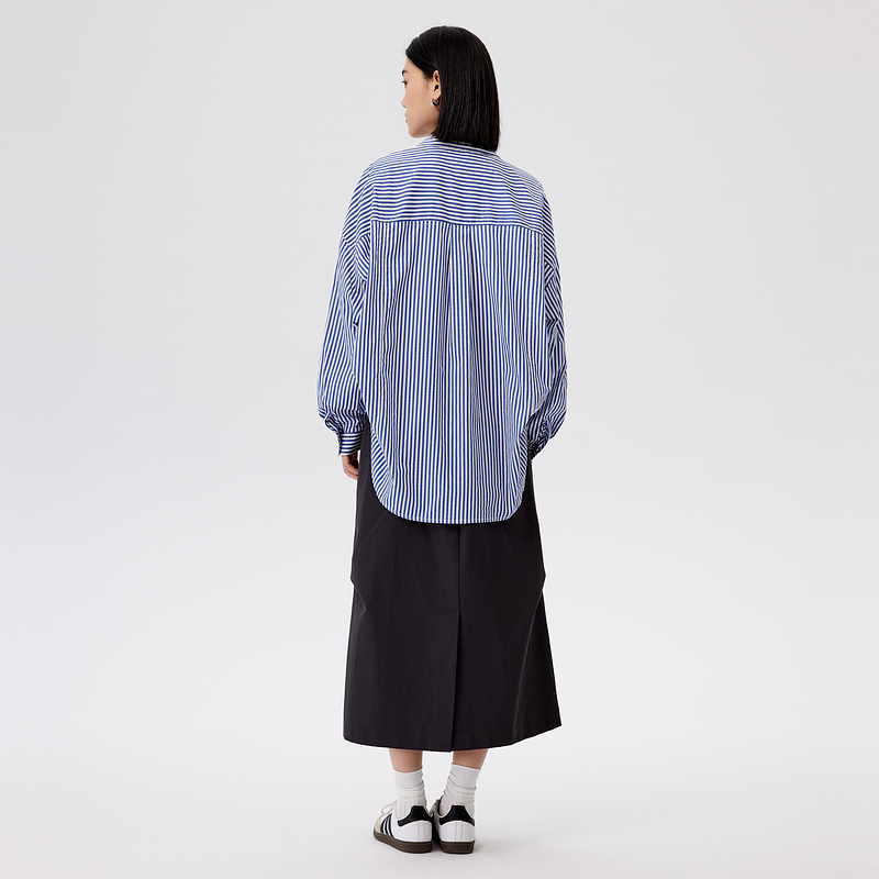 慵懒风衬衫 翻领通勤简约条纹宽松法式 女上衣 新款 水云间秋季