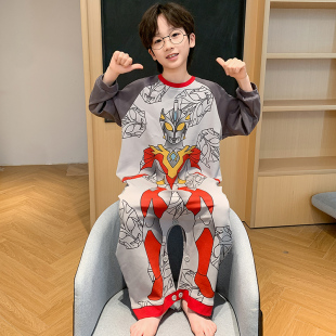 纯棉家居服男童秋装 儿童睡衣连体衣秋季 宝宝睡袋假面骑士2024新款