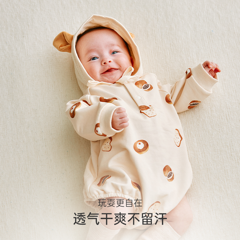 对襟连体衣新生婴儿包屁衣爬服0 宝宝长袖 2岁 Family春秋新品 Oak