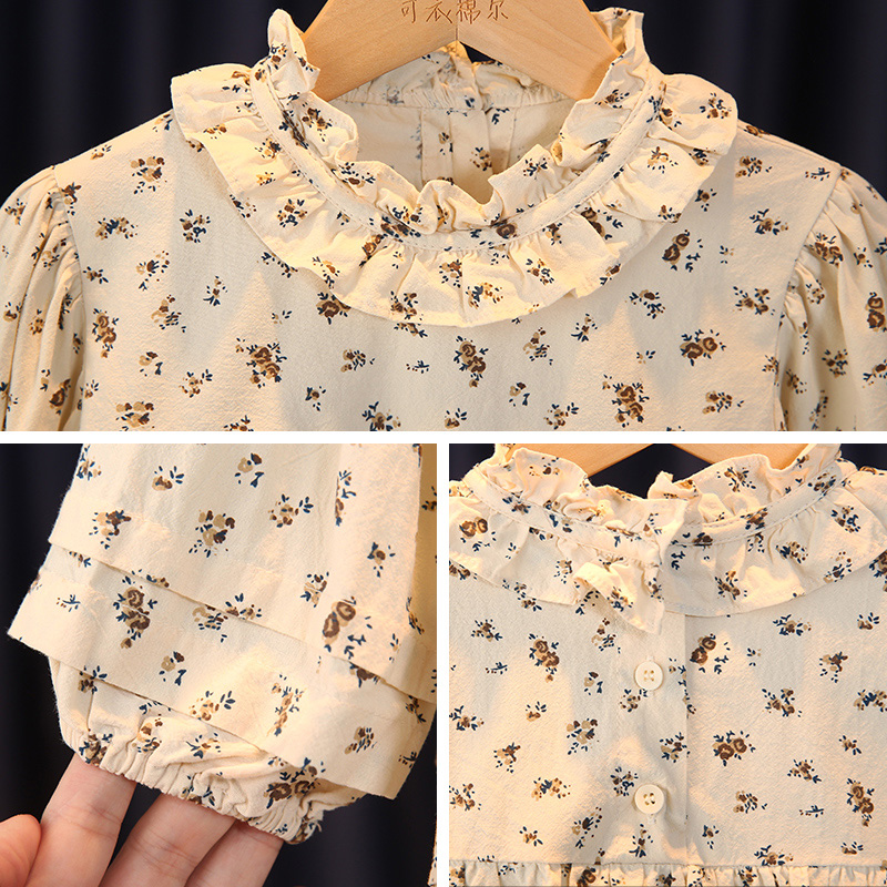 田园风女宝宝上衣小女孩小碎花娃娃衫 女童长袖 2025新款 春秋季 衬衫