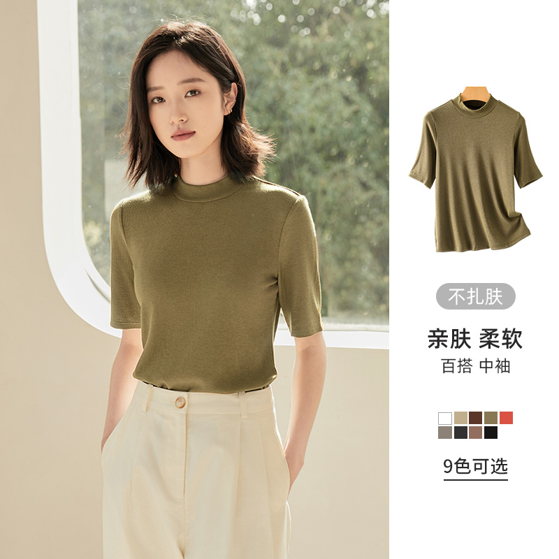半高领打底衫 内搭显瘦五分袖 女春秋简约百搭半袖 时尚 上衣 小衫 新款