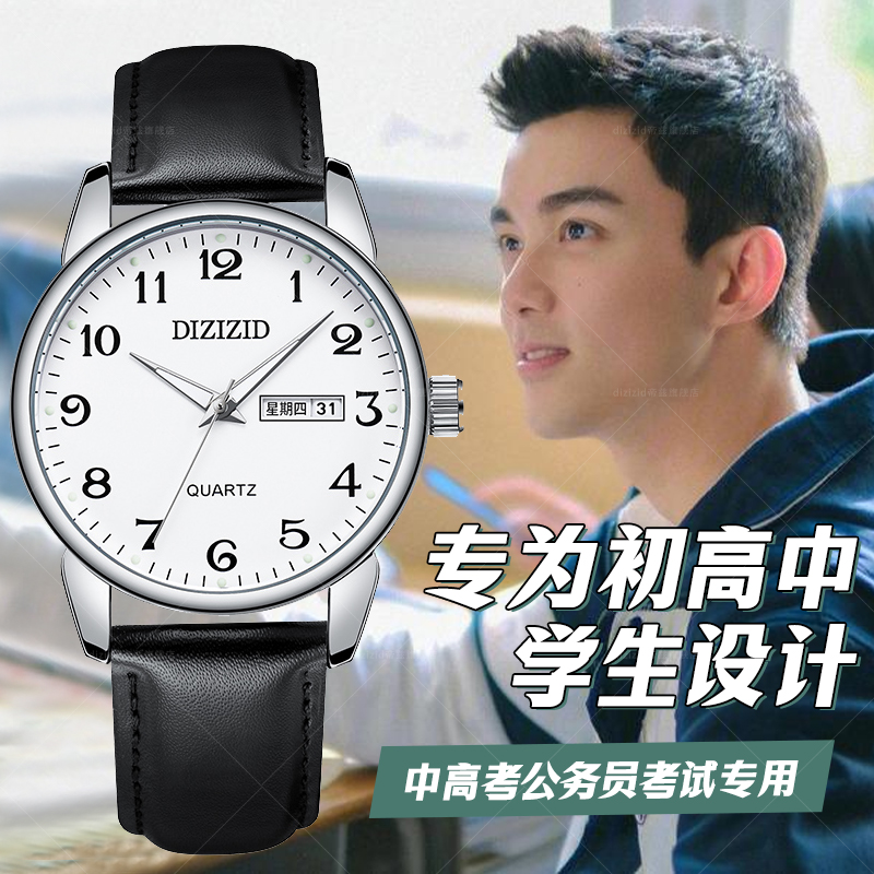 静音公务员初中考试专用机械青少年指针手表男款 女生高中学生防水