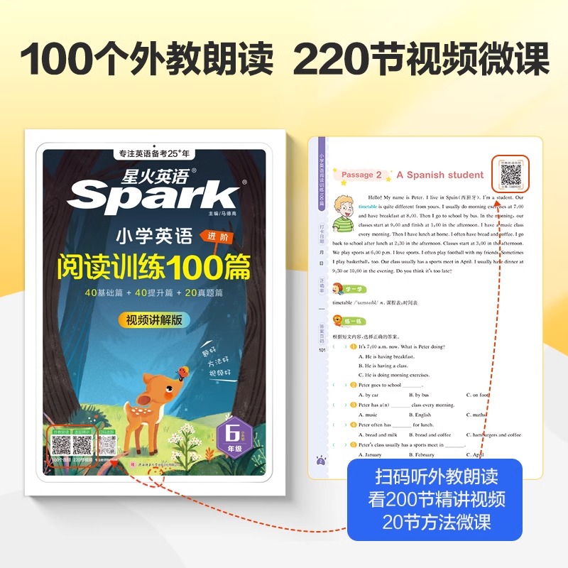 正版 专项练习题口语 2024星火英语小学英语阅读理解专项训练书小学生一二年级三四年级五六年级上册下册训练100篇听力天天练人教版