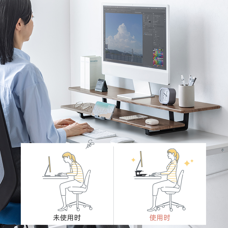 日本SANWA山业电脑增高架双层显示器抬高支架桌面多功能显示屏收纳置物整理架子笔记本底座人体工学简约台式