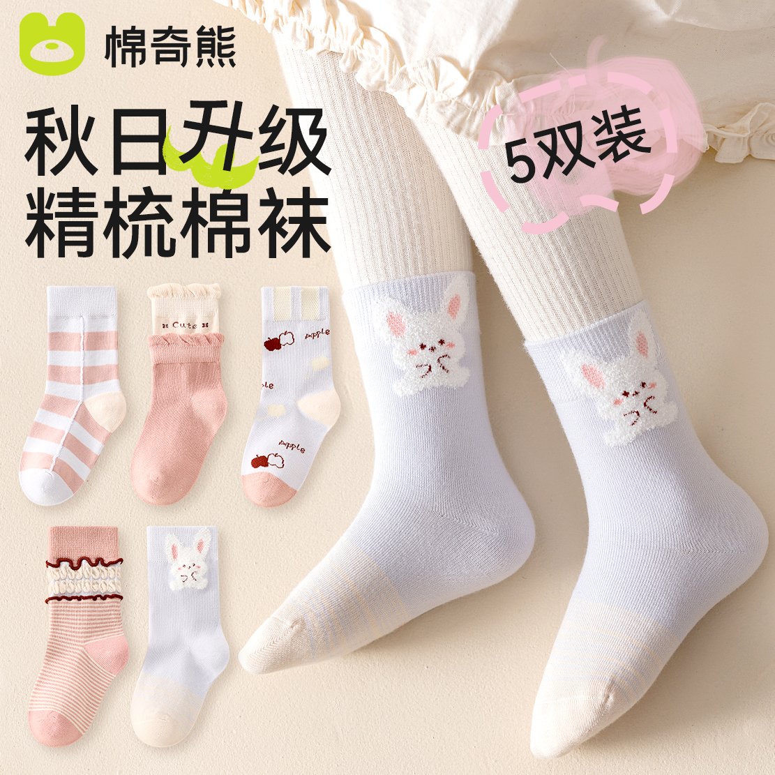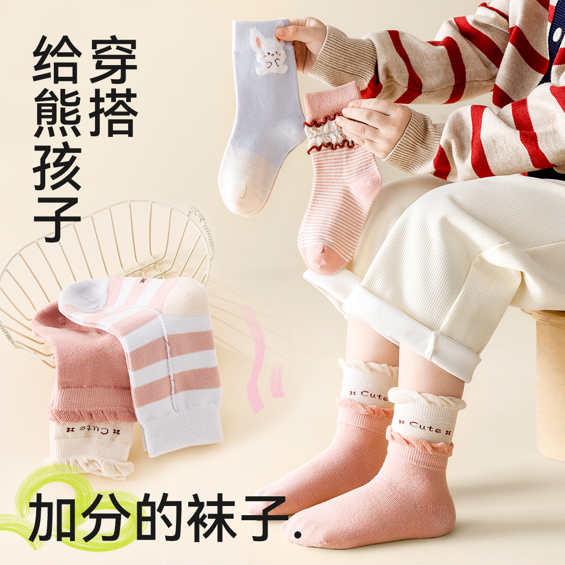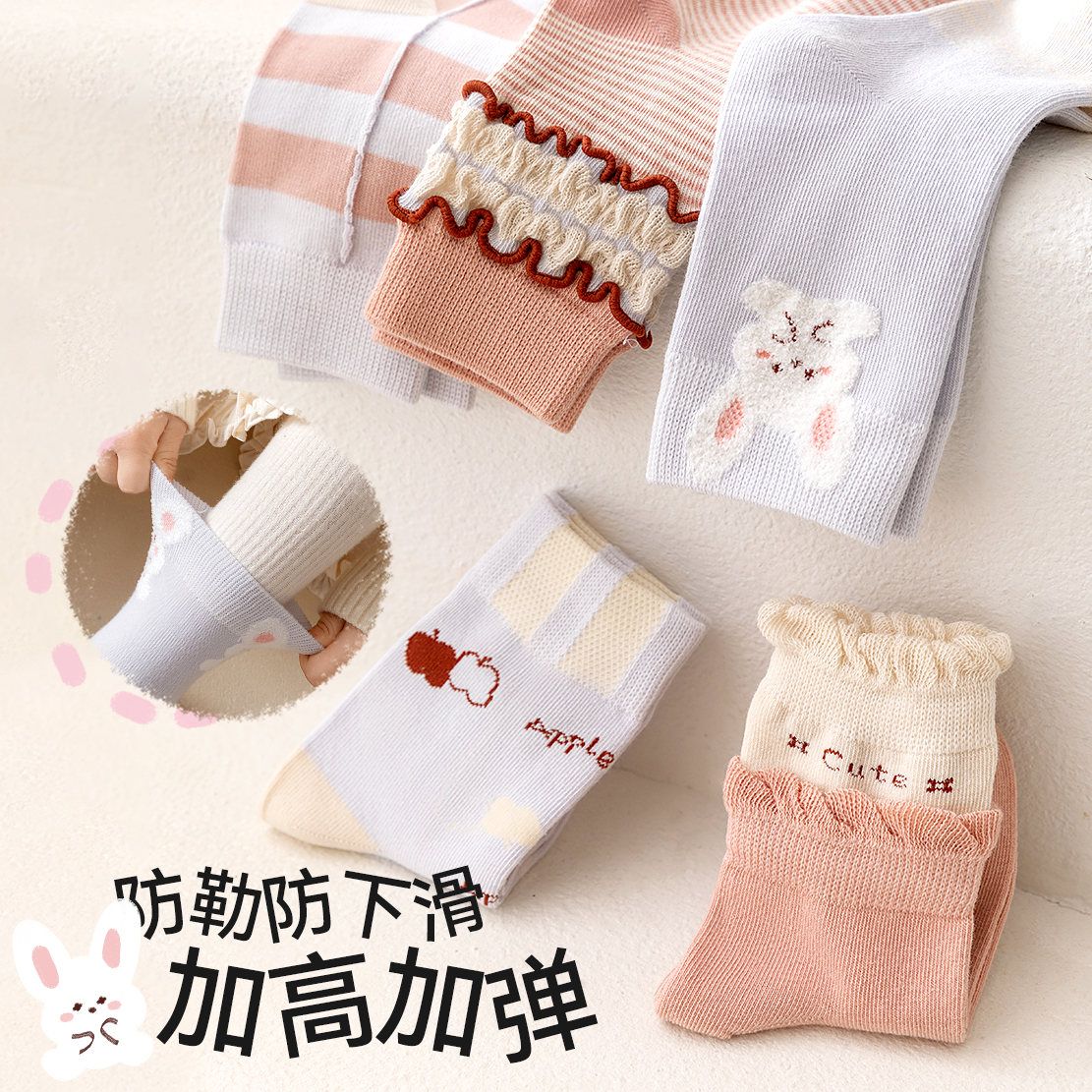 无骨袜 精梳花边棉袜女宝秋款 儿童袜子春秋薄款 纯棉中筒袜女童秋季