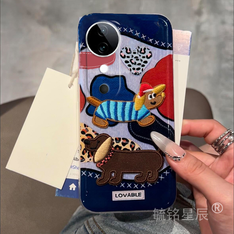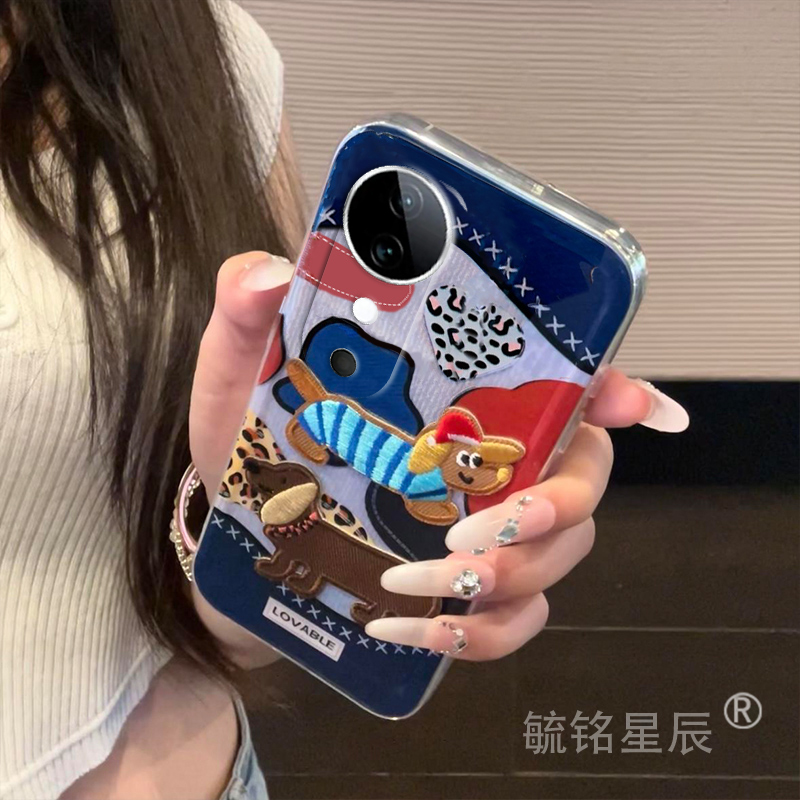 新款 s16pro复古S12防摔e超火特别卡通男保护套 立体刺绣小狗适用vivoS19Pro手机壳S18Pro可爱s17透明S15硅胶