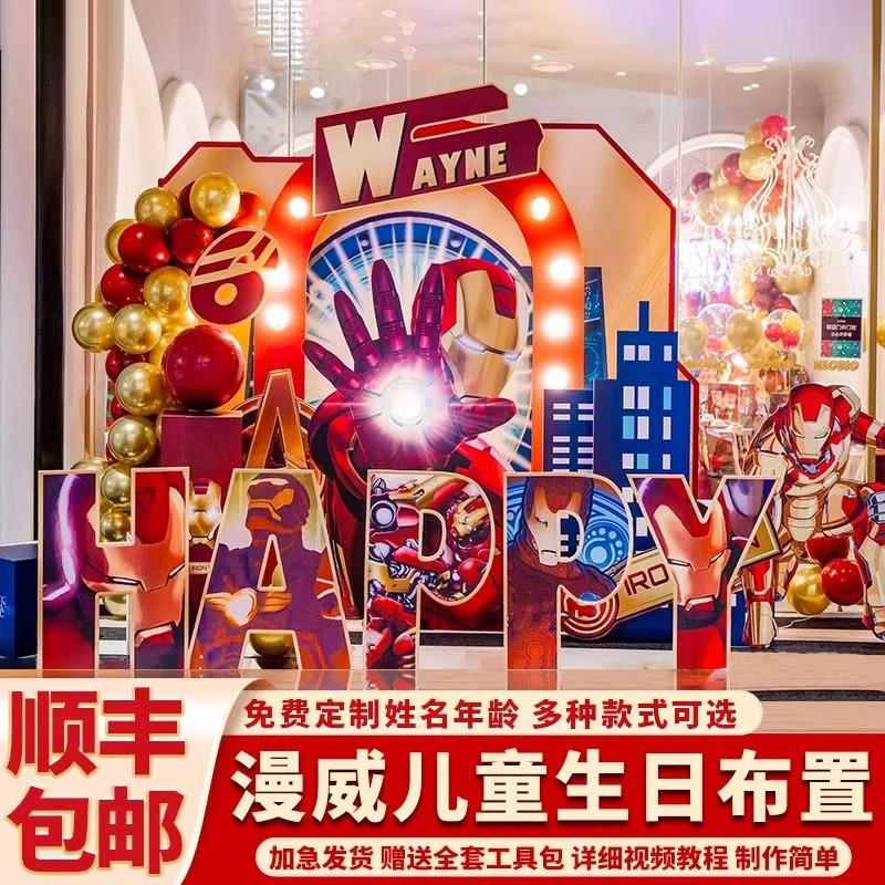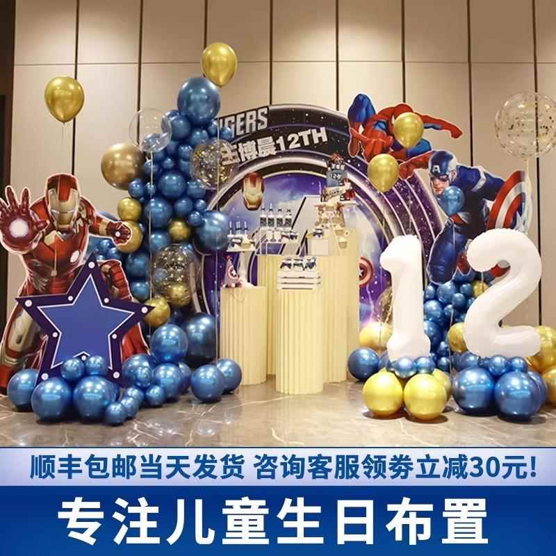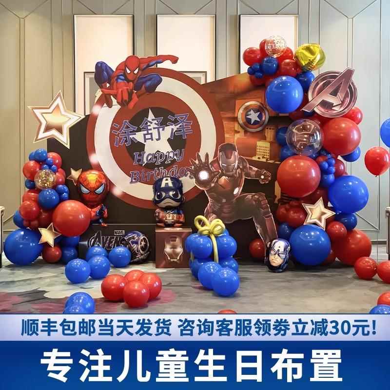 漫威主题男孩气球派对背景墙生日美队钢铁侠十岁布置装 饰场景kt板
