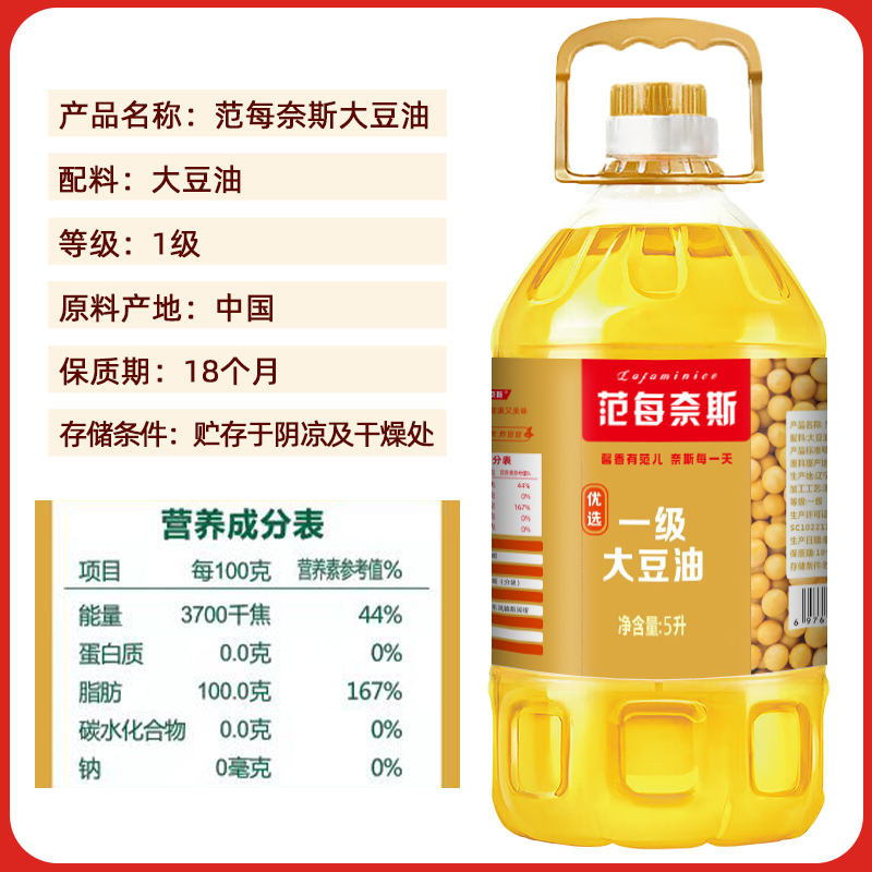 范每奈斯优选一级大豆油 健康好油 5L家庭装