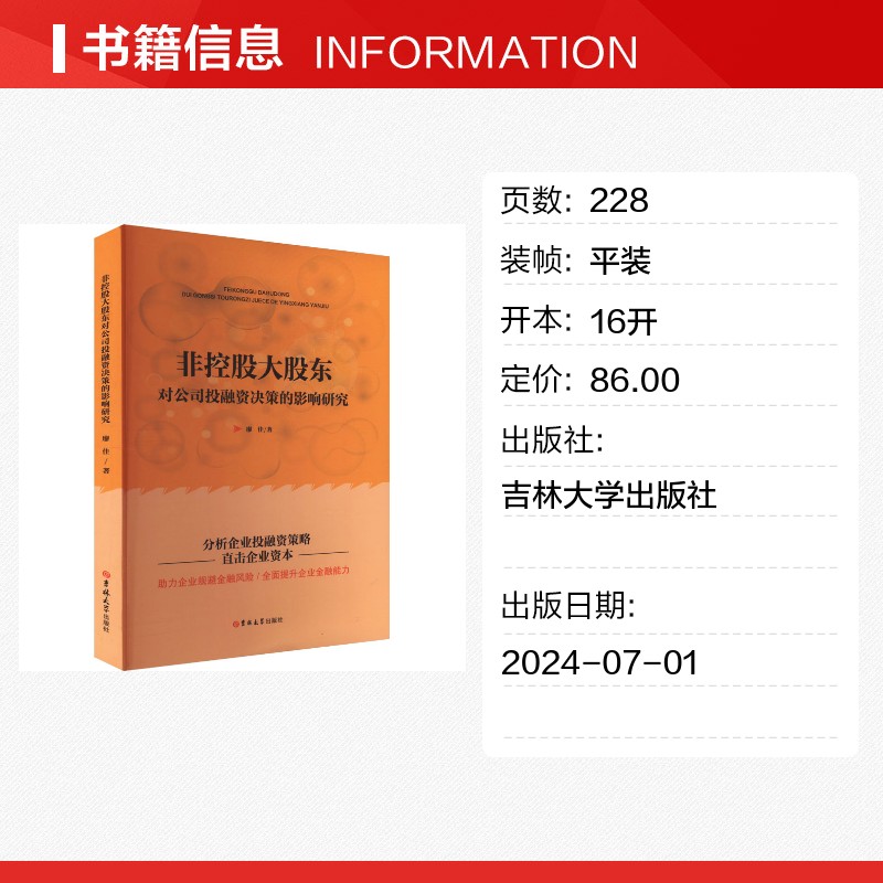 著 经济理论经管 吉林大学出版 影响研究 社 图书籍 廖佳 新华书店正版 非控股大股东对公司投融资决策 励志