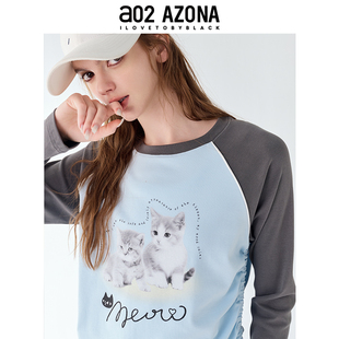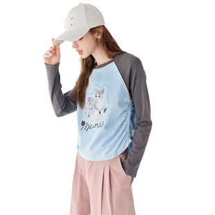 秋季 T恤女2025新款 初秋显瘦上衣 小众设计感甜美圆领长袖 a02插肩袖