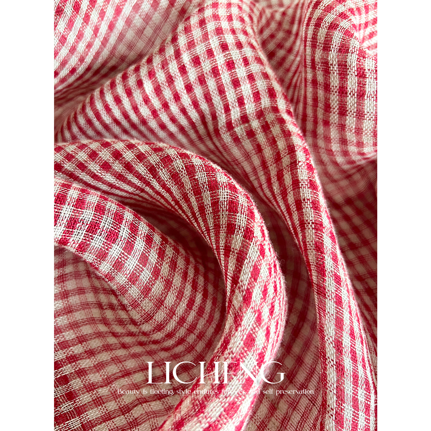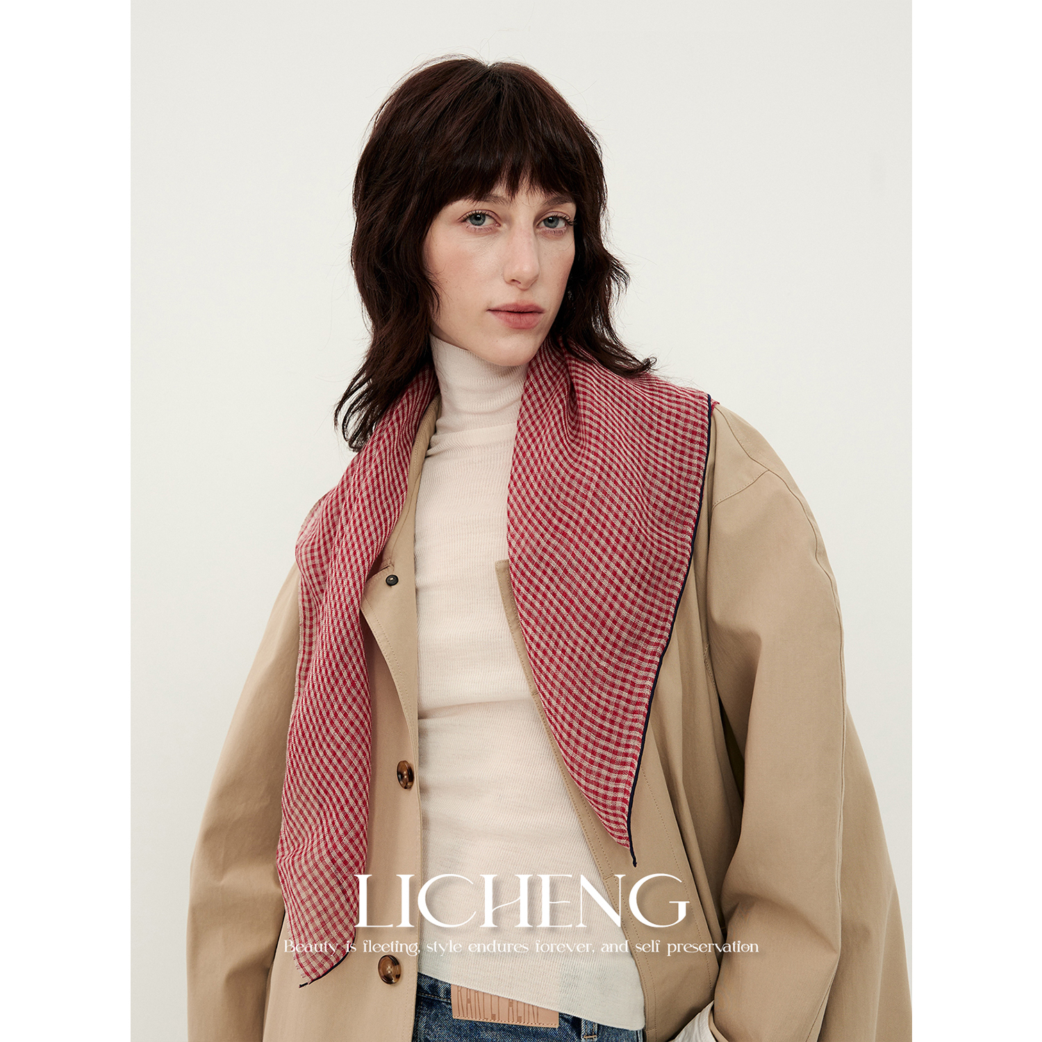 礼诚 100%亚麻丝巾女天然纹理日系方巾秋冬披肩围巾 果酱红格子