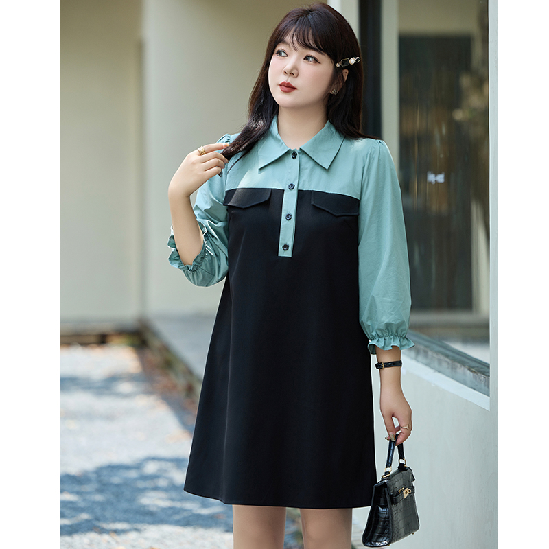 新款 大码 裙初秋装 直筒衬衫 翻领宽松显瘦藏肉胖MM气质连衣裙 7分袖