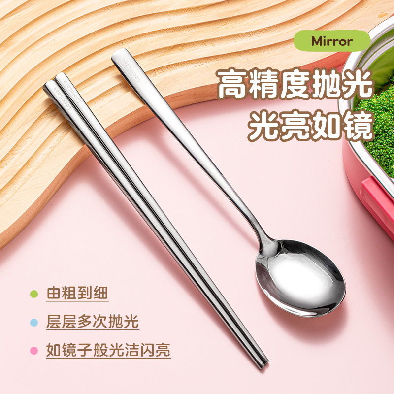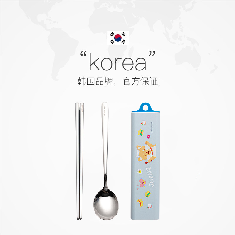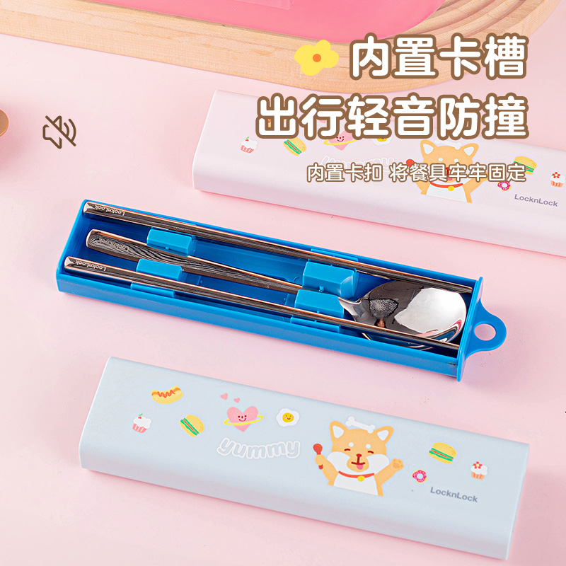 小学生专用餐具上班族收纳盒 乐扣乐扣不锈钢筷子勺子套装 自营